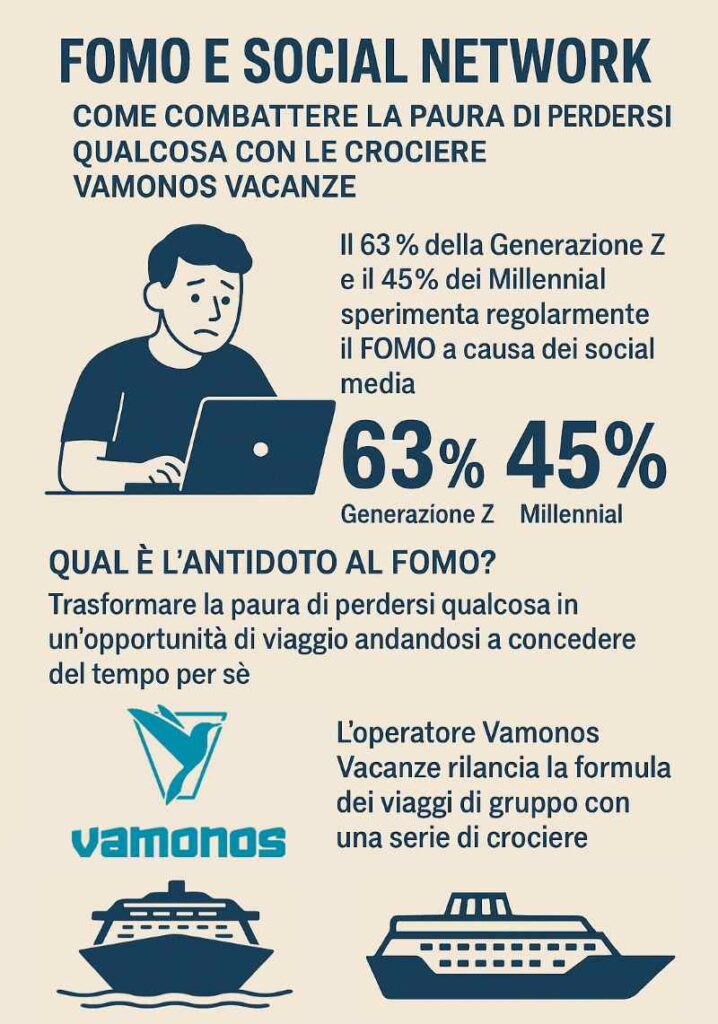 Il rimedio? Trasformare la paura di perdersi qualcosa nella gioia di perdersi qualcosa (JOMO, Joy of Missing Out), imparando a scegliere esperienze autentiche e liberatorie. Ed è proprio questo l’obiettivo di Vamonos Vacanze, che annuncia per l’autunno-inverno una nuova programmazione di crociere e tour di gruppo nel Mediterraneo, Caraibi e Nord Europa,pensati per chi non vuole arrendersi al FOMO e desidera invece vivere esperienze autentiche, all’insegna di nuove amicizie, divertimento e destinazioni da sogno.